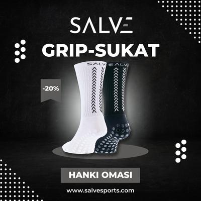 Salvesports.com tarjoaa urheilijoille ja harrastajille parhaat mahdolliset tarvikkeet, jotka tukevat heitä tavoitteidensa saavuttamisessa Grip-Socks-sukkien ja tarvikkeiden avulla. Grip-sukat ovat urheilusukat, joiden pohja on varusteltu pitämistä lisäävillä grip-elementeillä. Grip-sukat tehostavat suorituskykyä erityisesti nopeissa liikkeissä ja käännöksissä pitämällä jalan tukevasti paikallaan kengässä. Salve Grip -sukat ovat pehmeän mukavat jalkaterästä ja varren kompressio pitää jalat terävinä koko suorituksen ajan. Pidon ansiosta sukat ehkäisevät myös rakkojen syntymistä. Salve Grip -sukkien kompressio ja pitävä grip-pohja ehkäisee myös venähdyksiä ja muita alaraajan mahdollisia vammoja. Sukkien laadukkaat materiaalit pitävät jalat kuivina ja hengittävinä koko suorituksen ajan.
